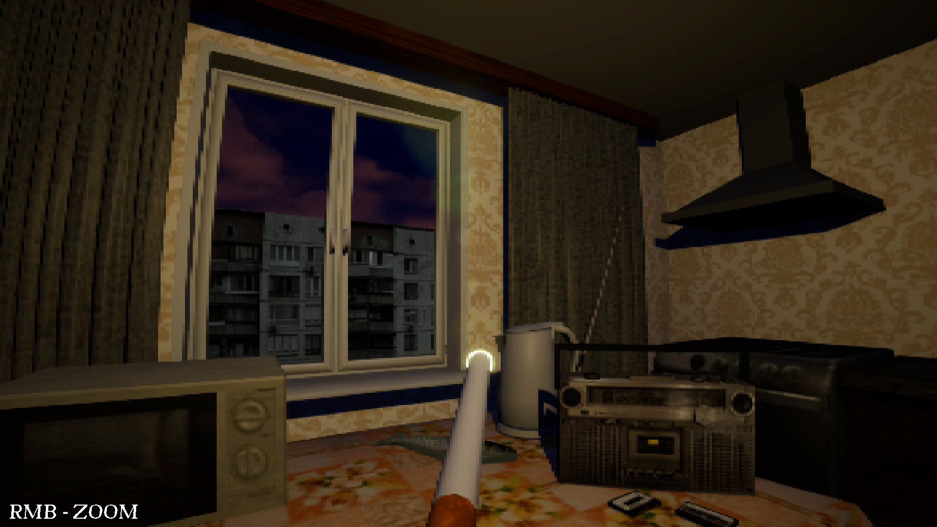 A short game for game jam. In this game, you can rotate your head 360 degrees, smoke, eat fish, and admire the view from the window. In general, in this game you can relax and dream about something while being here.